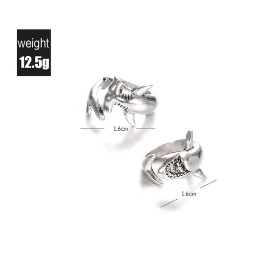 Shark Finger Ring Set 2Pcs Women Men Adjustable Opening Ring Simple Punk Style Metal Finger Rings Unisex Party Jewelry